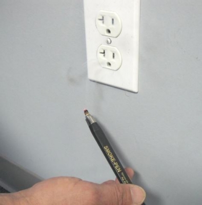 Rauchstift Smoke-PenRauchstift Smoke-Pen in VerpackungRauchstift LeckageortungRauchstift Leckageortung an Steckdose